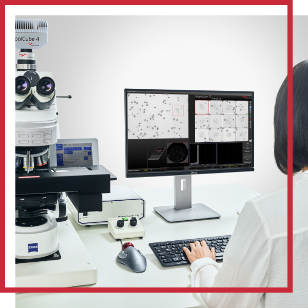 Users can customize their workflow using the Metafer Platform Software toolbox, allowing them to decide which steps to automate and which to leave manual. For instance, the search and image acquisition processes can be linked, eliminating the need for manual intervention between them. Installing an automatic immersion oil dispenser (AutoOiler) ensures the preparations receive the correct amount of immersion oil when switching to a high-resolution objective.